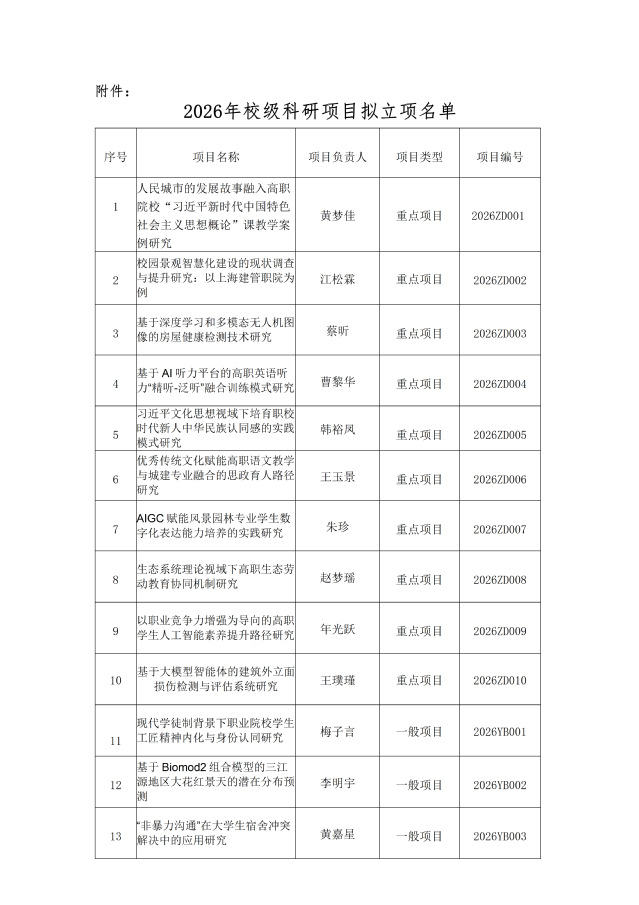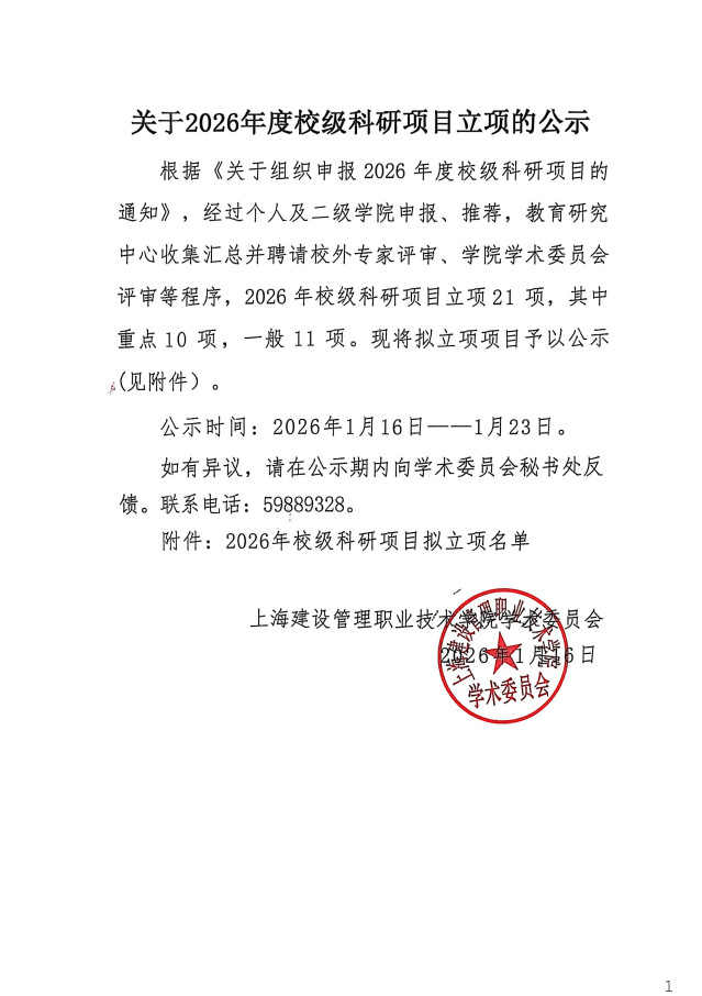 关于2026年校级科研项目立项的公示