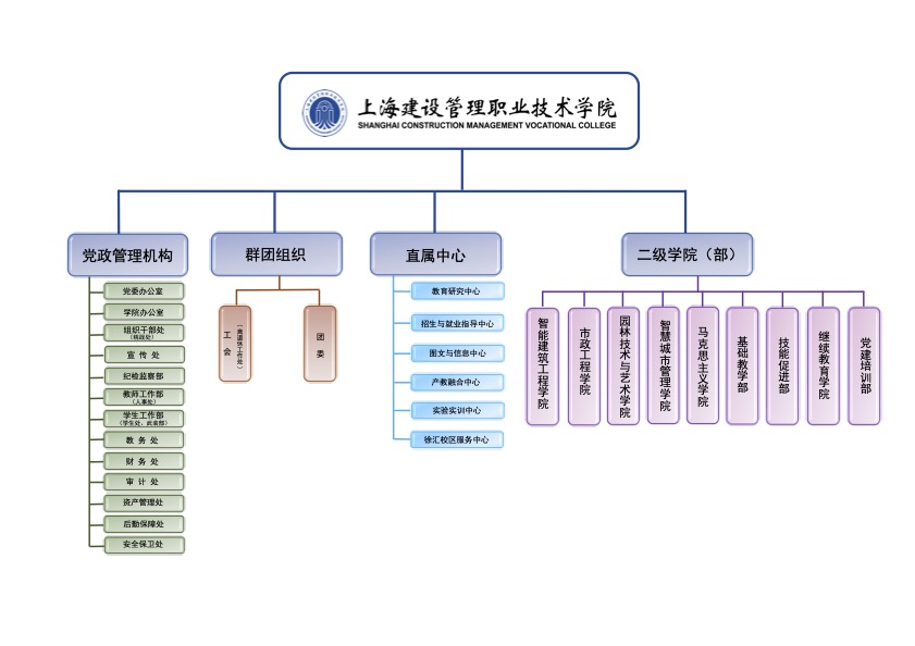 教育研究中心、招生与就业指导中心、图文信息中心、产教融合中心、实验实训中心、徐汇校区服务中心、继续教育校区服务中心