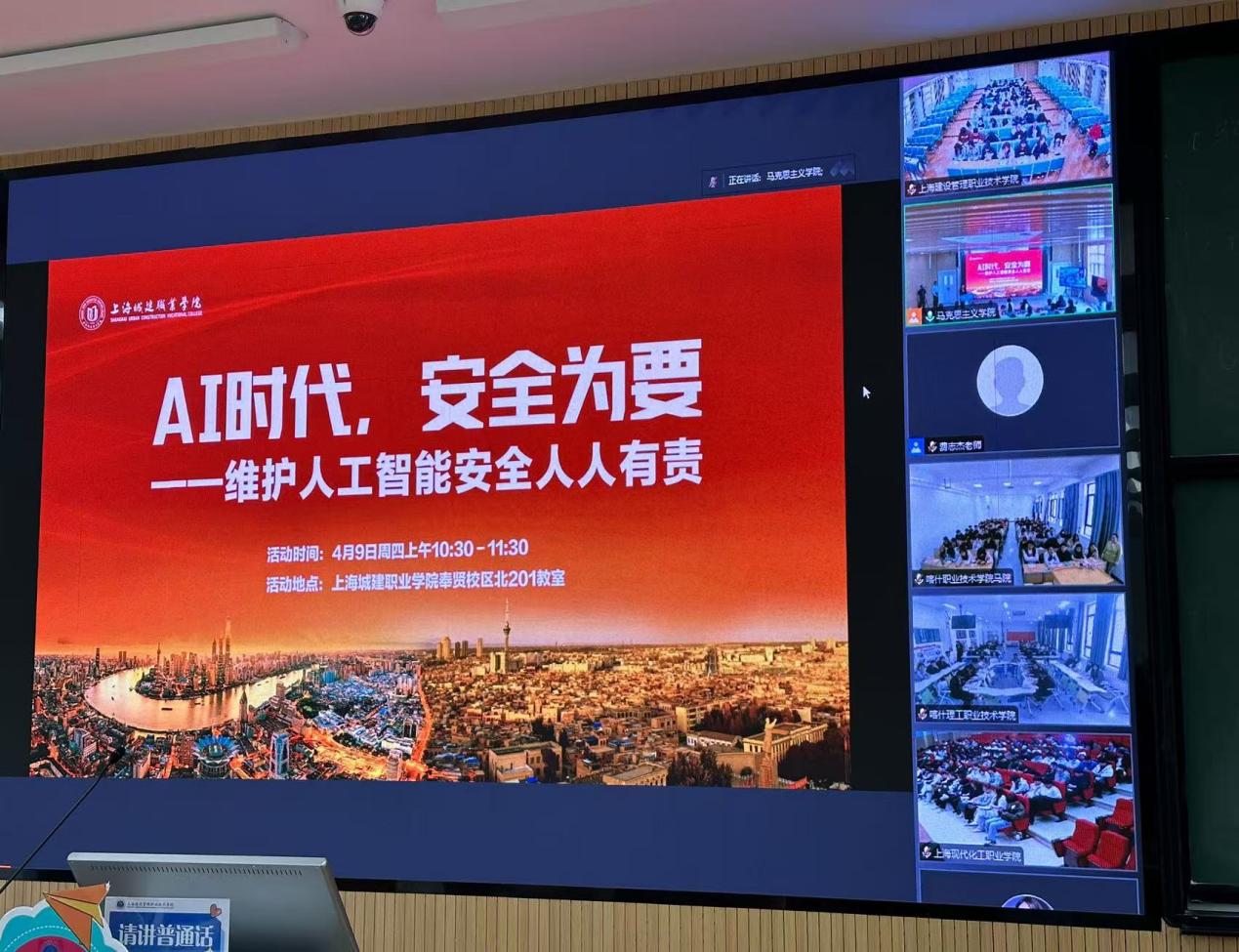 作为上海市民族团结教育基地,我校始终致力于促进各民族师生交往交流交融,铸牢中华民族共同体意识。本次活动跨越东西部地理距离,沪疆学子云端相聚、同频共振,正是民族团结教育的生动实践。课程中,当喀什的同学举手分享抢到“千问奶茶”的喜悦,当退役大学生士兵胡益维讲述对AI安全的敏锐感知,当城建职业学院人工智能专业田清琦同学剖析“龙虾”应用的最小权限原则……屏幕两端掌声与思考交织,民族团结的情谊与守护国家安全的责任在云端交融。费教授特别强调:“无论东部还是西部,大家都有网红奶茶可以喝。在全球战火纷飞的时代,这份安宁来之不易,更需要我们共同守护。”