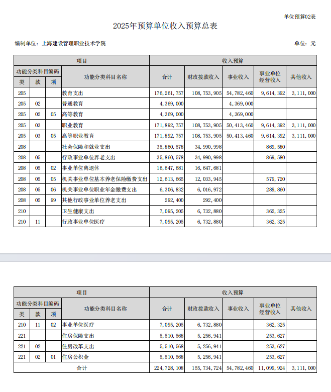 2025年收入预算总表