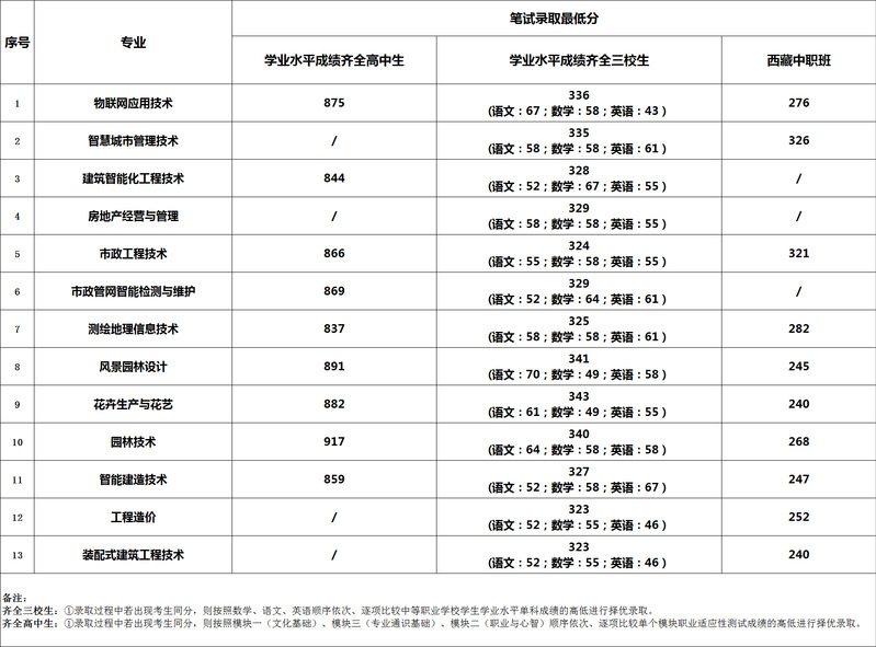 2026年专科层次依法自主招生笔试录取最低分